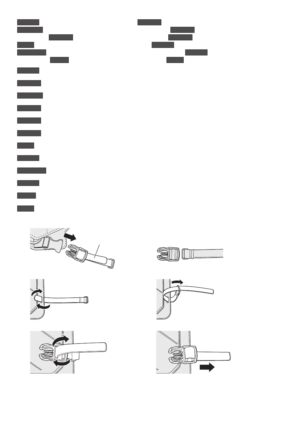 Rimuovere la fibbia di sgancio (A) sia sul lato destro che su quello sinistro (passaggi da A a B), e fissarla al