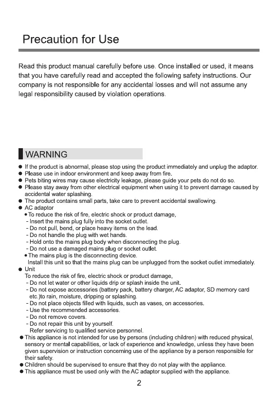 Panasonic CP-JNF01 - Precaution for Use; WARNING