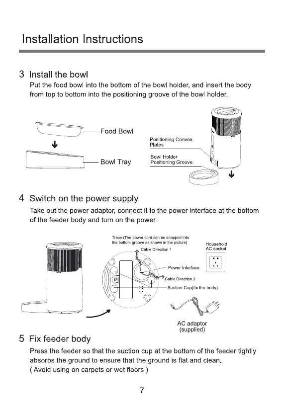 Panasonic CP-JNF01 - Install the bowl; Switch on the power supply; Fix feeder body