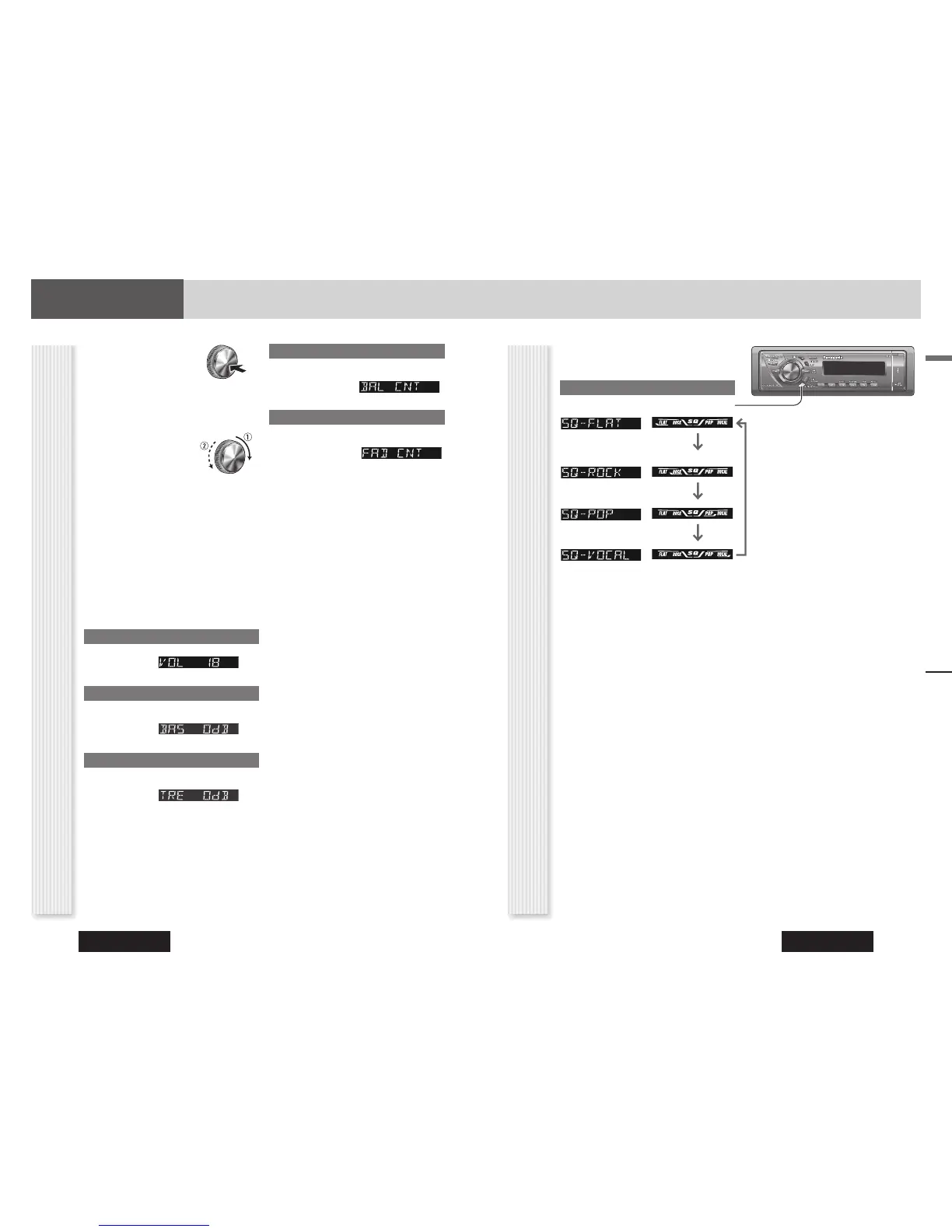 Note: Setting of SQ, bass/treble and volume are