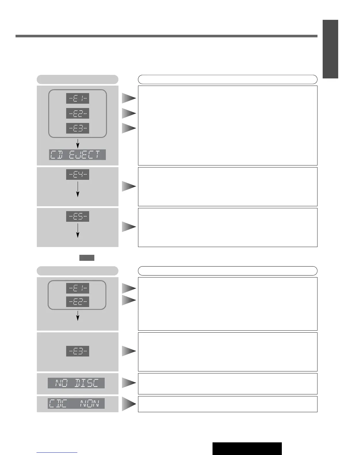 ¡ Messages in the action and display sections of the error chart vary with changer. Refer to the operating instructions for