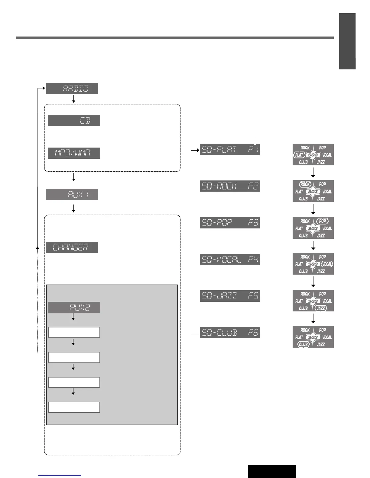 You have 6 preset modes (FLAT, ROCK, POP, VOCAL,