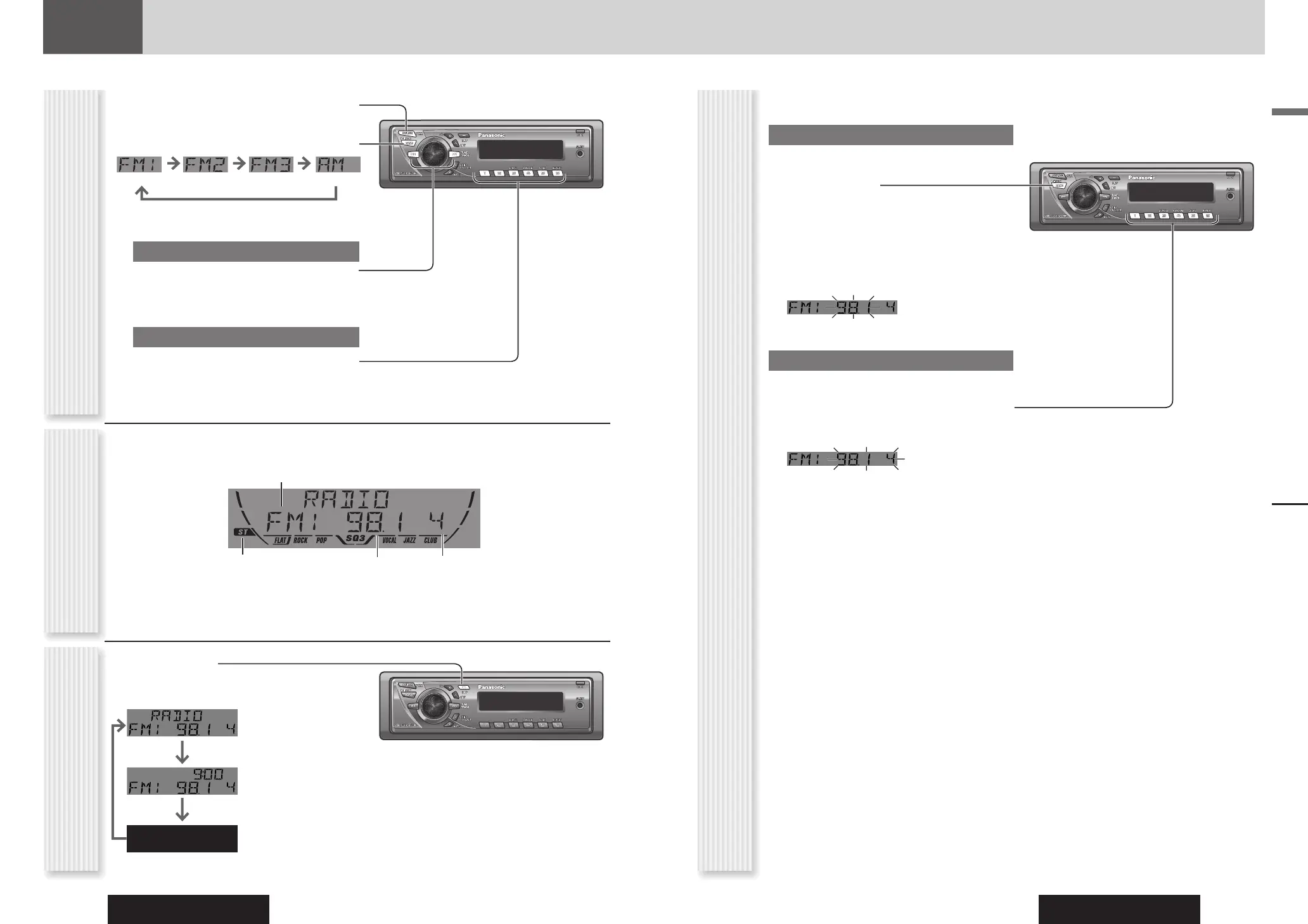 Up to 6 stations can be preset in AM, FM1, FM2, and FM3