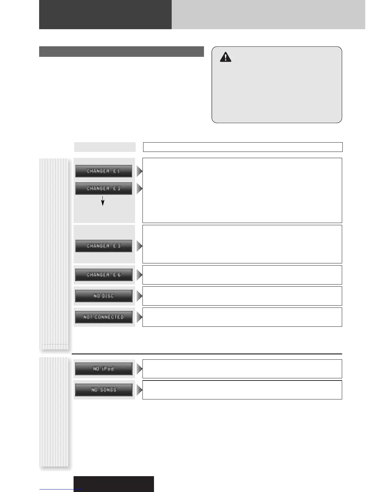 Note: Messages in the action and display sections of the error chart vary with changers. Refer to the operating