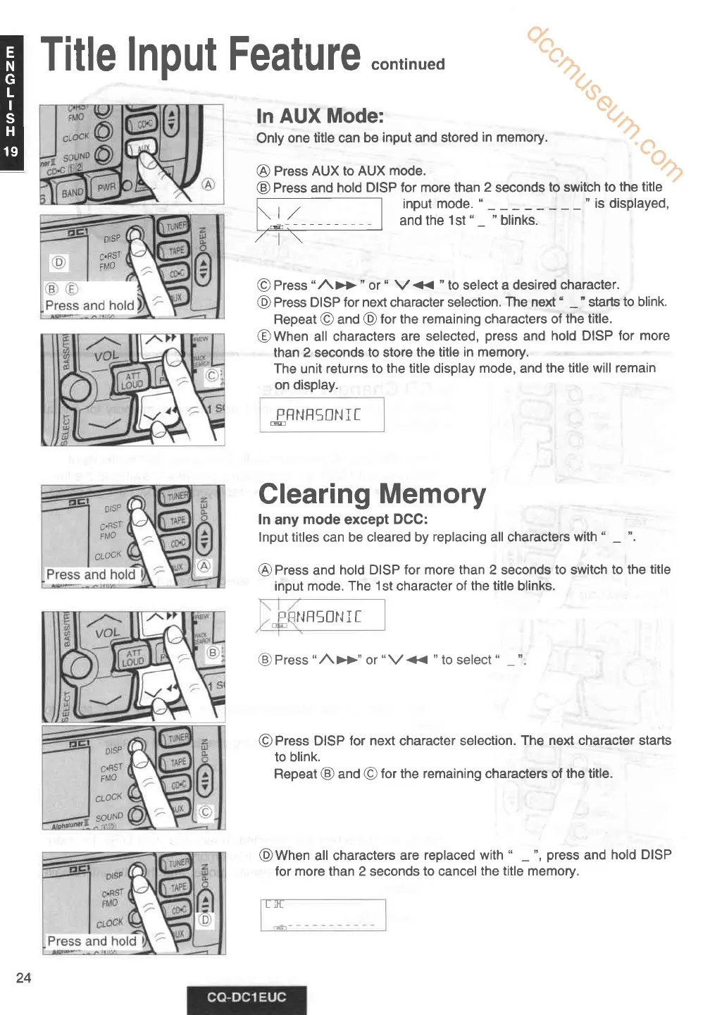 Press DISP for next character selection.