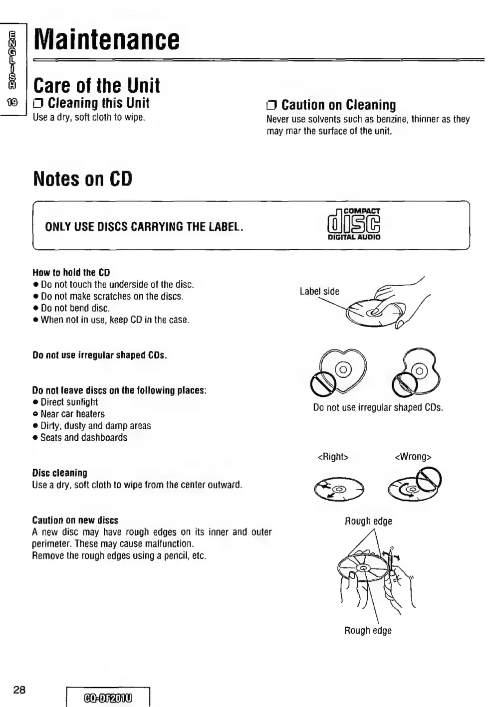 Panasonic CQ-DF201U - O Maintenance. Ili Ads; Care of the Unit, Notes on CD