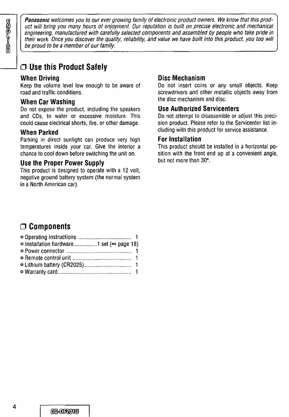Panasonic CQ-DF201U - Use this Product Safely Ua ID; COMPONER Apa a a Ine Rae Wa Ageless