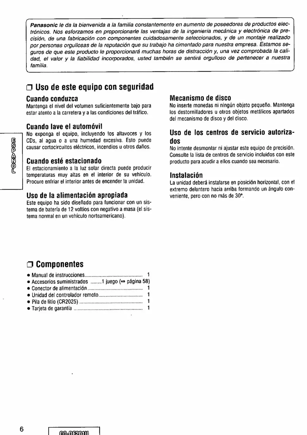 Panasonic CQ-DF201U - Uso de Este Equipo con Seguridad
