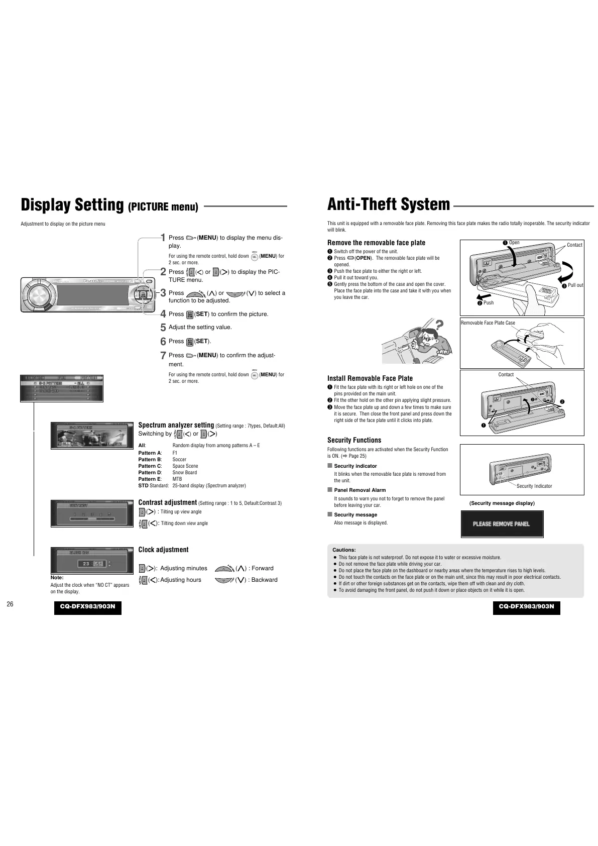 ¡ Do not touch the contacts on the face plate or on the main unit, since this may result in poor electrical contacts.