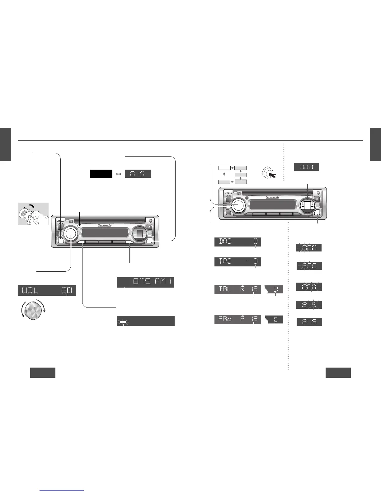 in audio mode (2 seconds in volume mode), the display
