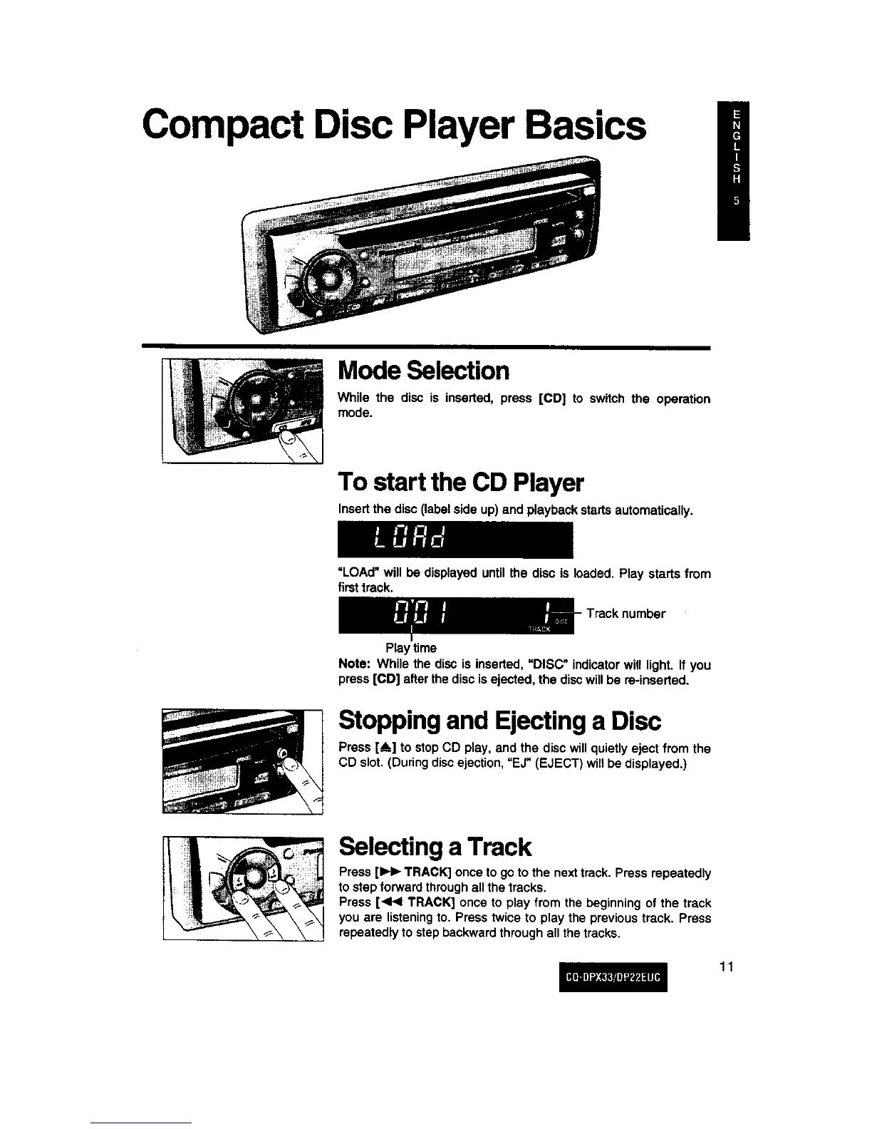 CD slot. (Duringdiscejection,=EJ" (EJECT) willbe displayed.)