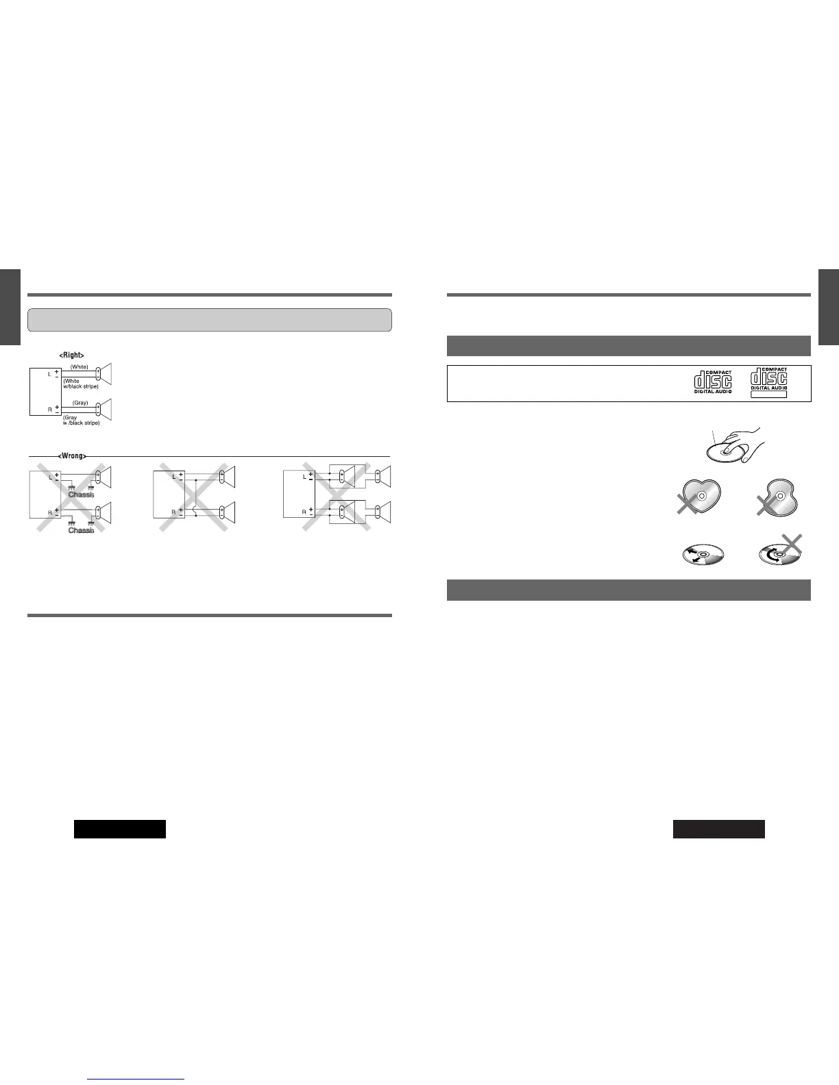 Caution: Please follow the instructions given below. Failure to do so will cause damage to the unit and speakers.