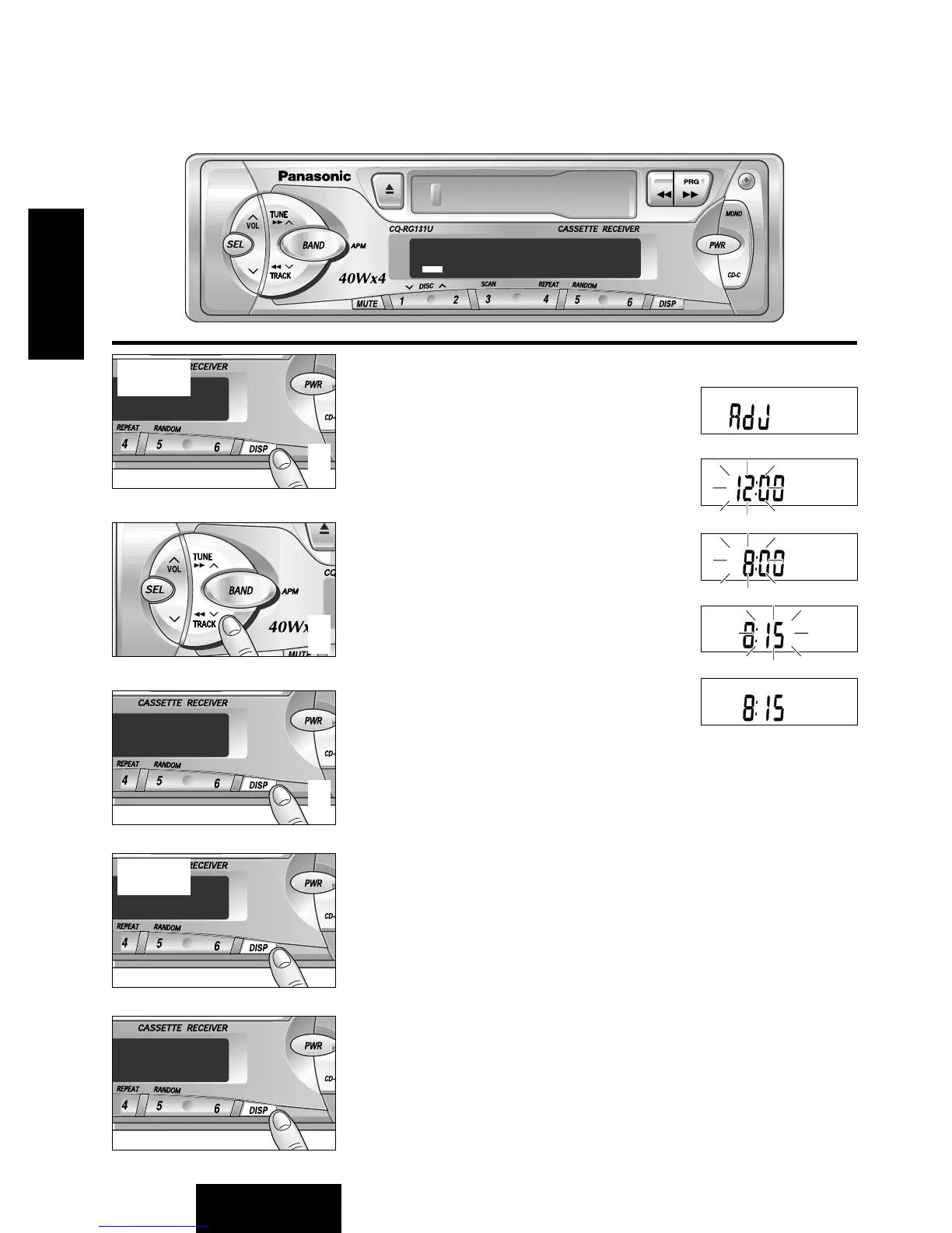 Appuyer sur la touche [DISP] pour faire afficher l'hortoge.