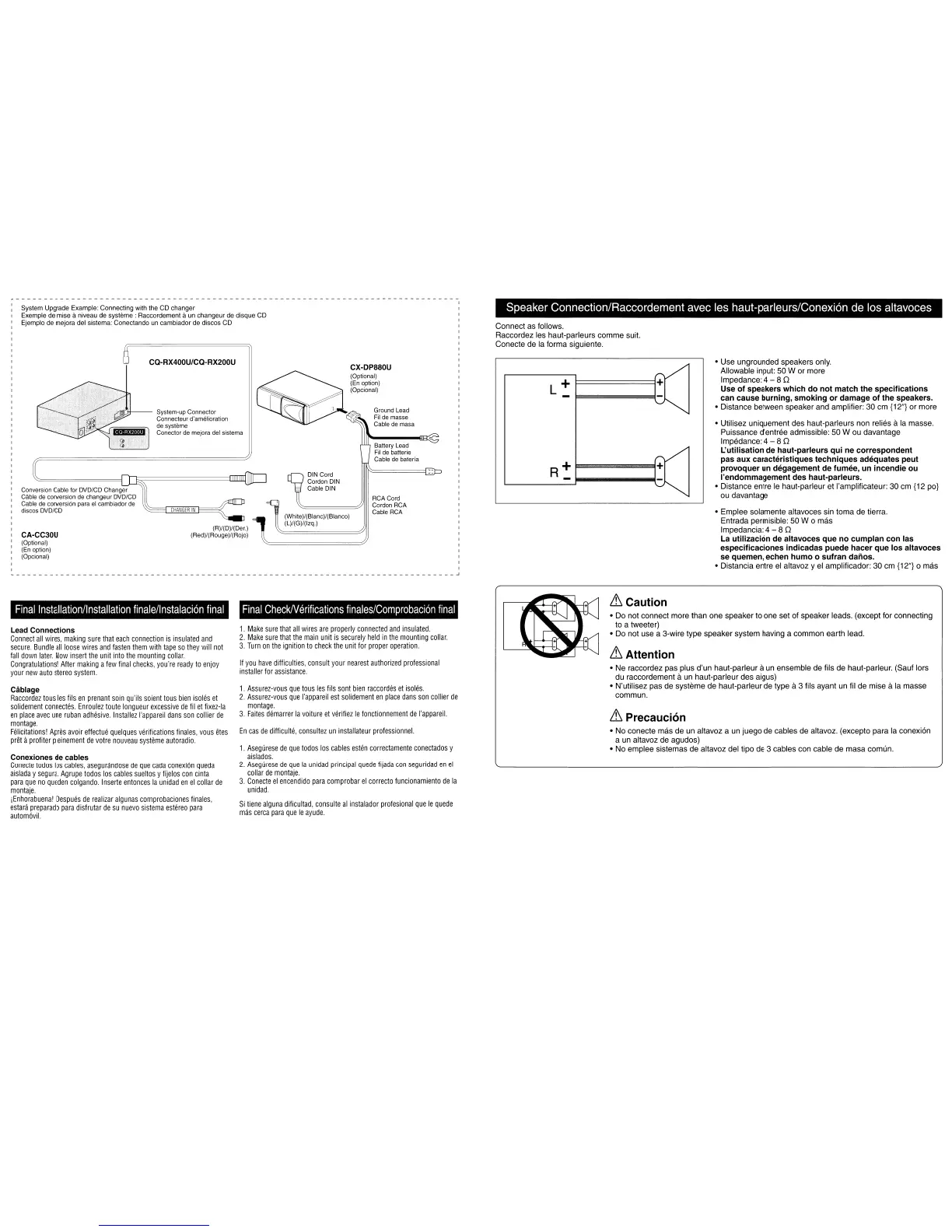 not connect more than one speaker to one set of speaker leads, {except for connecting