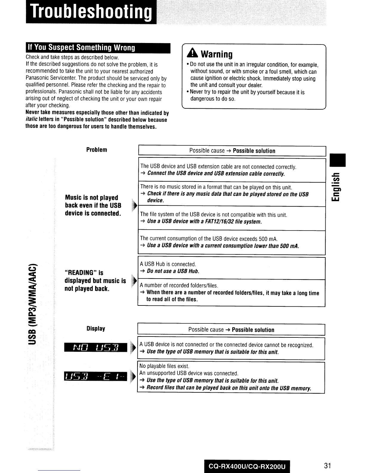 Other manuals for Panasonic CQ-RX400U
