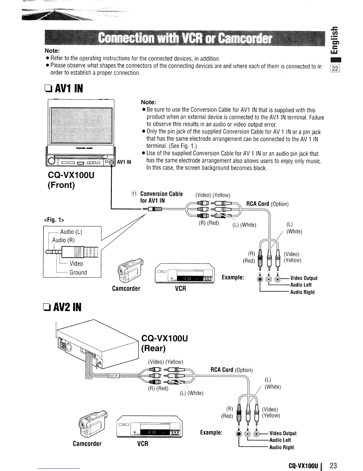 Panasonic CQ-VX100U - Connection with VCR or Camcorder