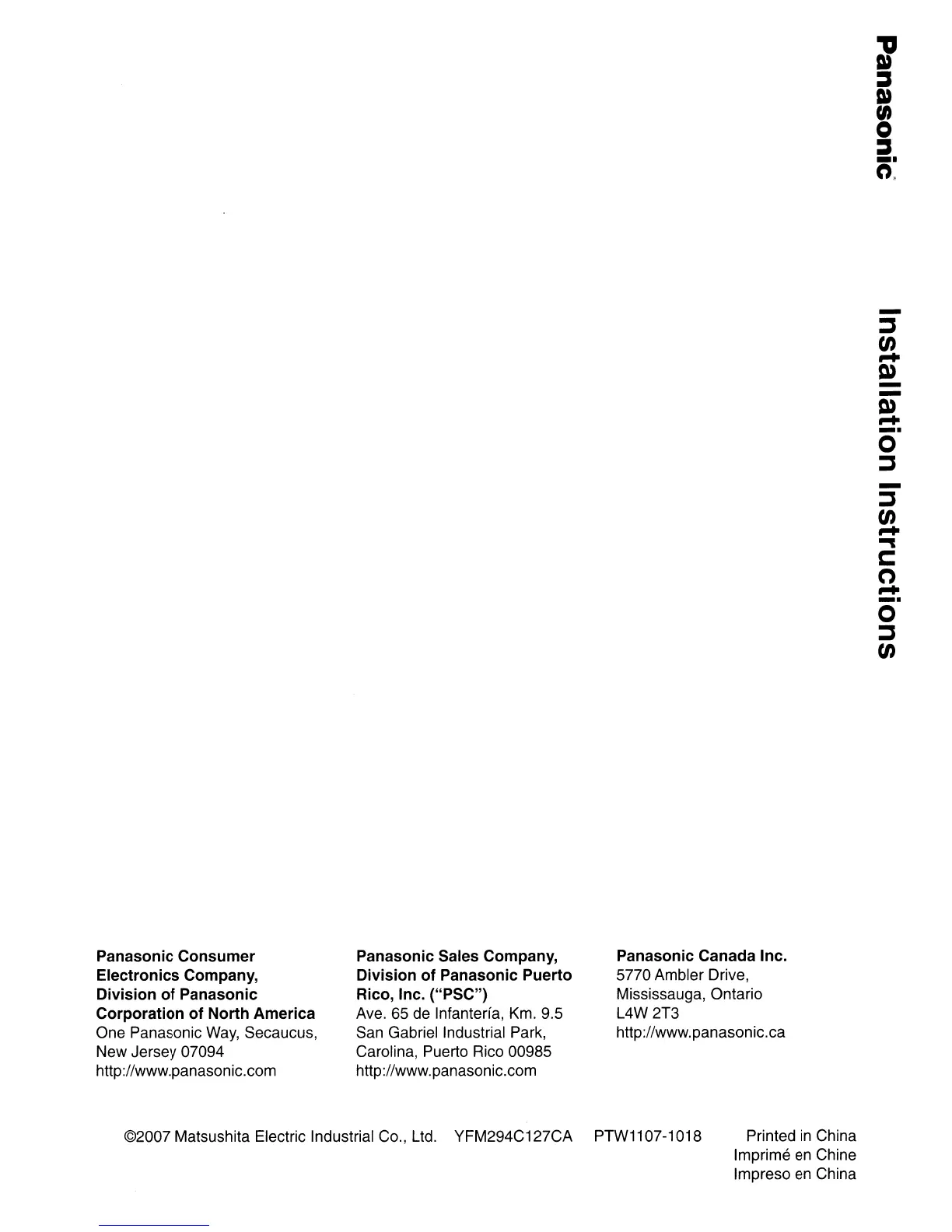 ©2007 Matsushita Electric Industrial Co., Ltd. YFM294C127CA PTW1107-1018