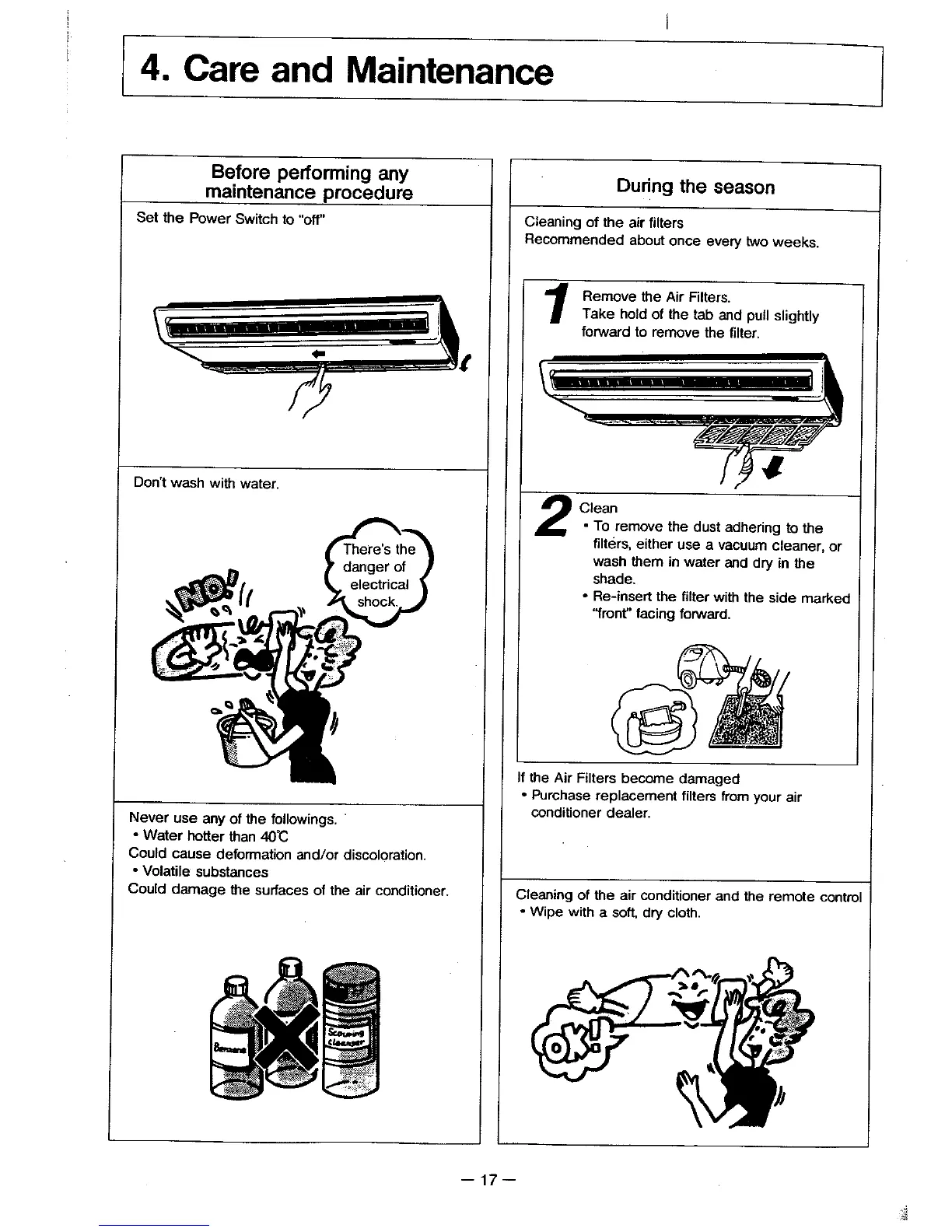 Panasonic CS-1270TR - Care and Maintenance; Cleaning of the air filters