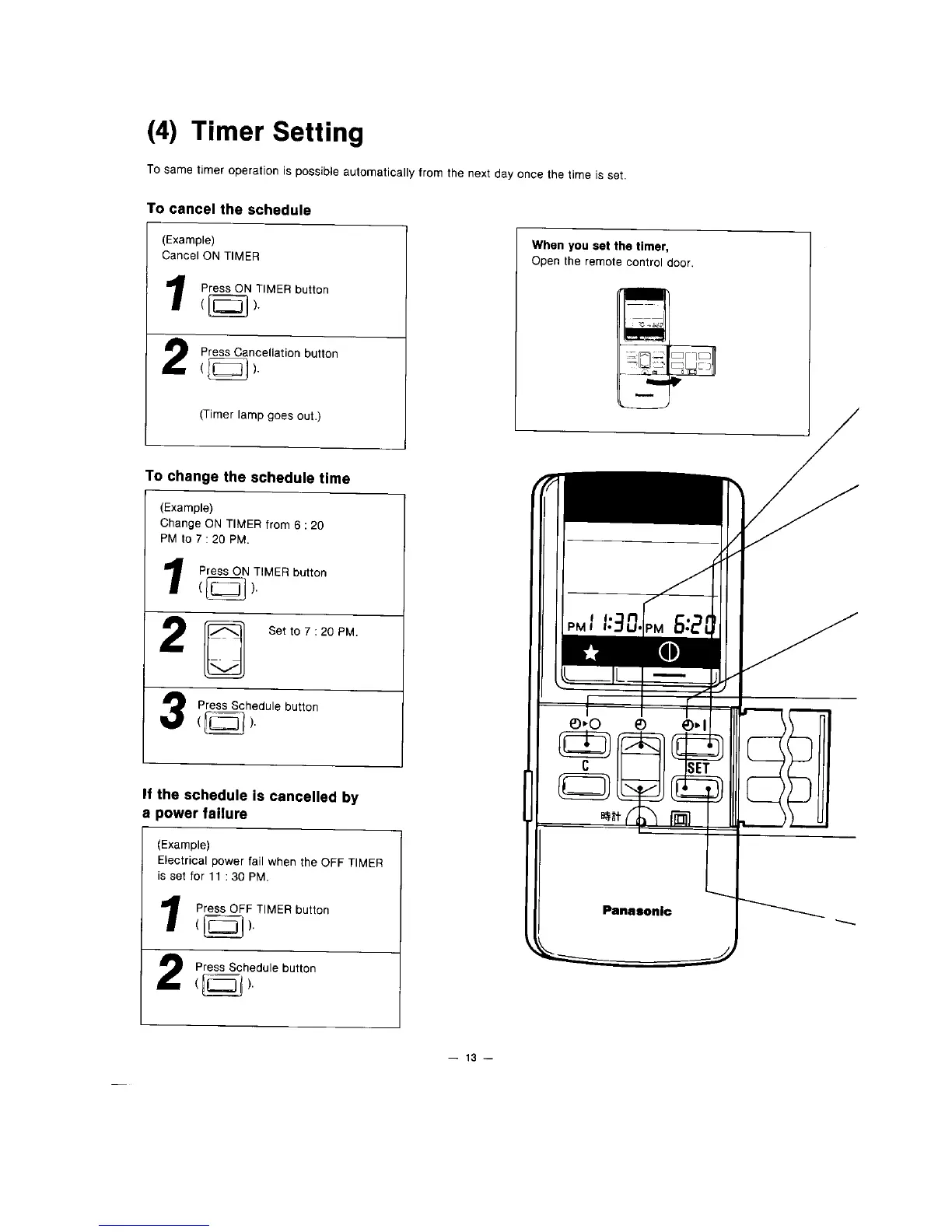 Panasonic CS-1273KR - Timer Setting; Timer Setting Procedures