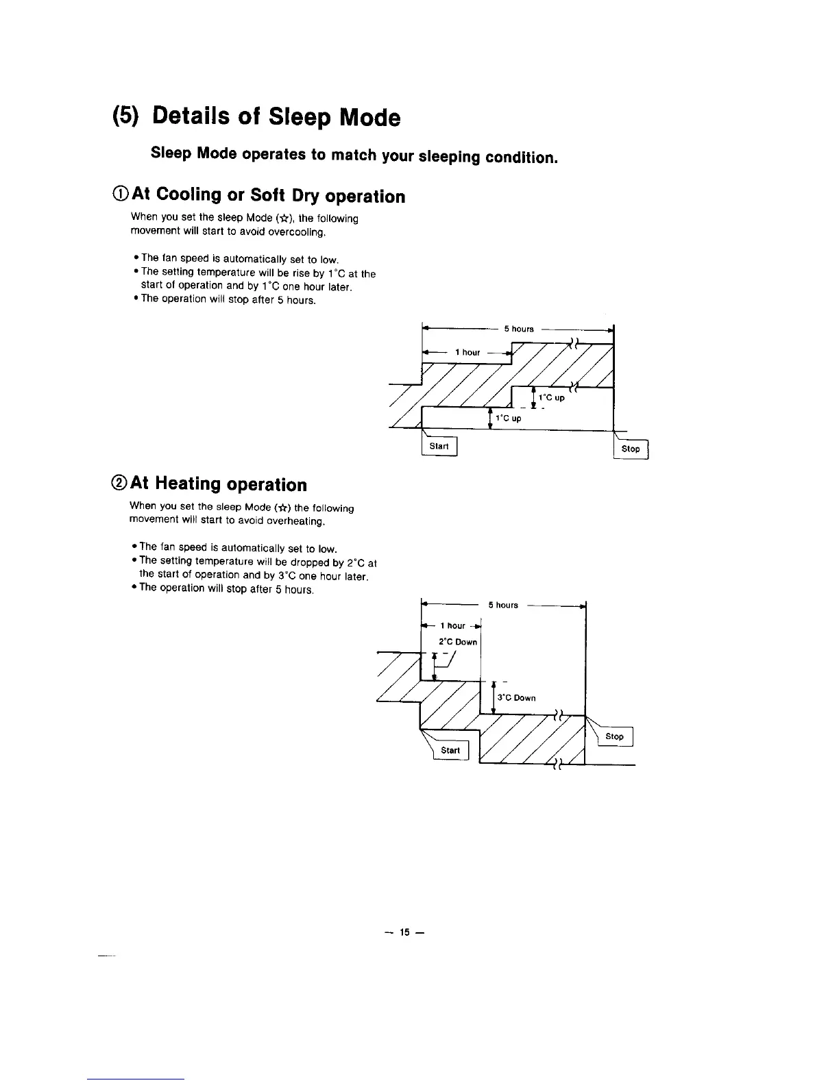 Panasonic CS-1273KR - Sleep Mode Details; Sleep Mode at Cooling or Soft Dry Operation; Sleep Mode at Heating Operation