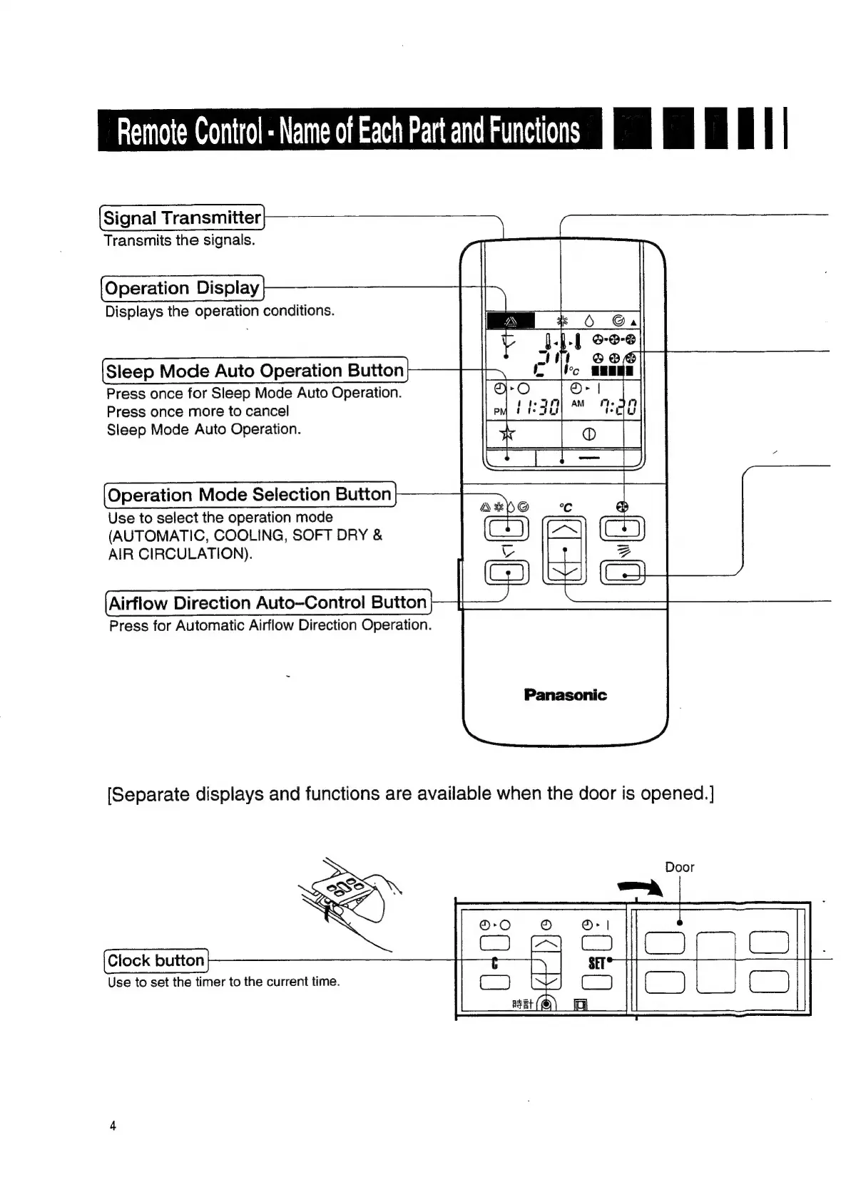 Panasonic CS-1803KE - Remote Control Overview; Remote Control Display and Buttons