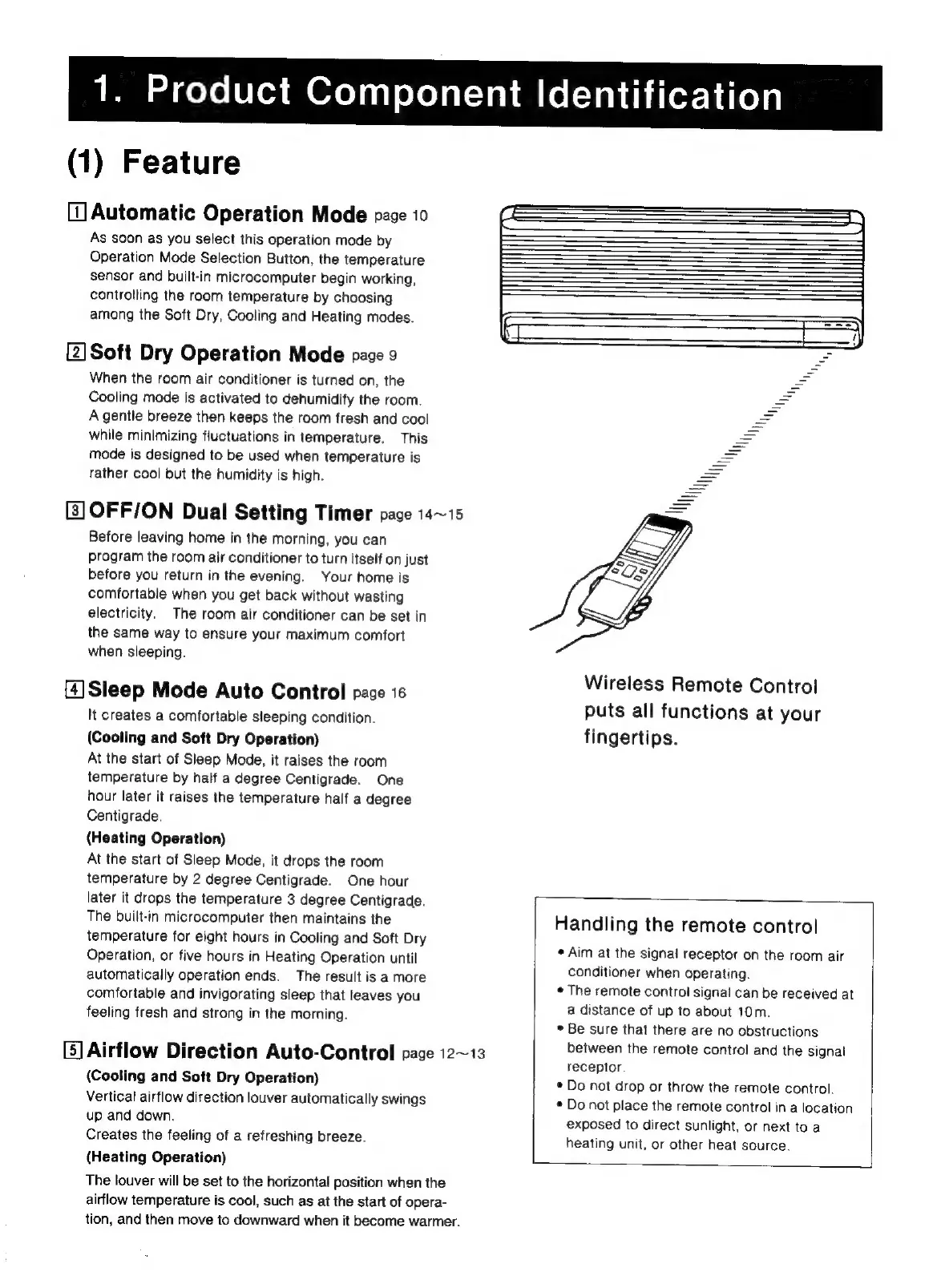 Panasonic CS-1873KR - Product Component Identification; Key Air Conditioner Features