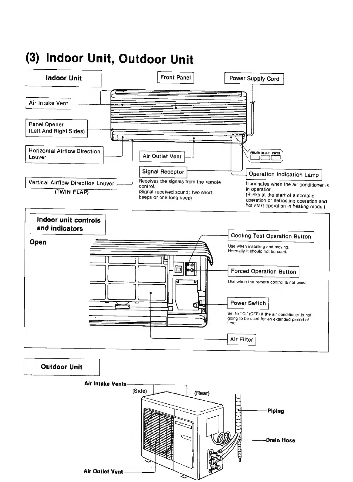 Panasonic CS-1873KR - Indoor and Outdoor Unit Components; Indoor Unit Components and Controls; Outdoor Unit Components