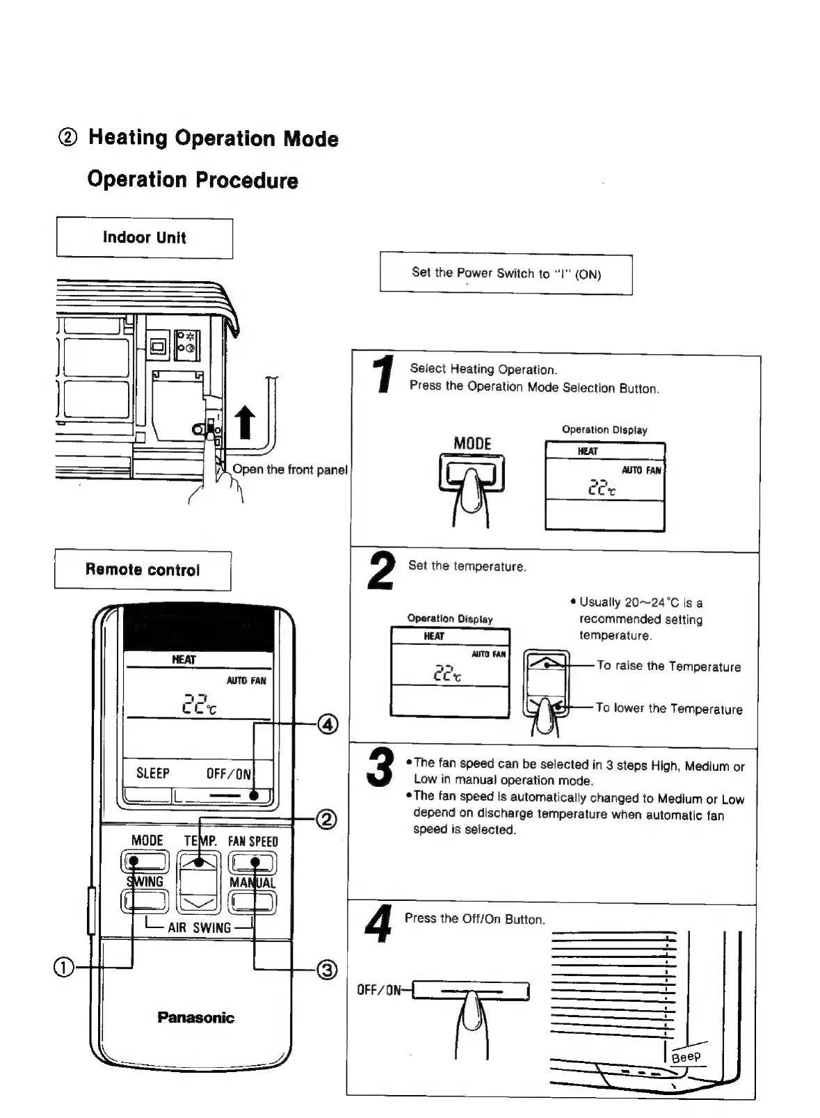 Panasonic CS-2473KR - 8. Heating Operation Mode; Heating Mode Setup and Fan Speed Adjustment
