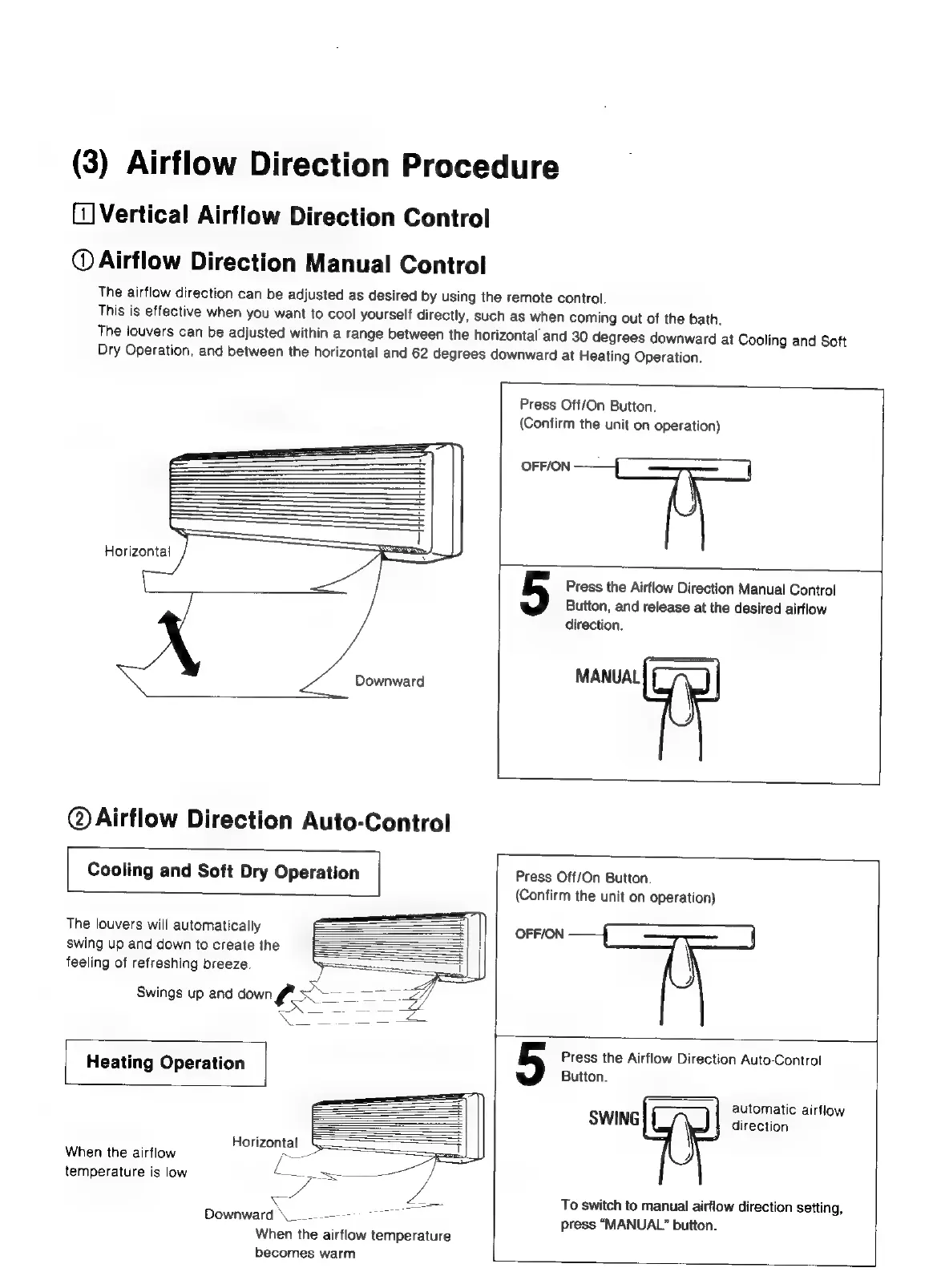 Panasonic CS-2473KR - 12. Airflow Direction Control; Manual and Automatic Airflow Adjustment Procedures