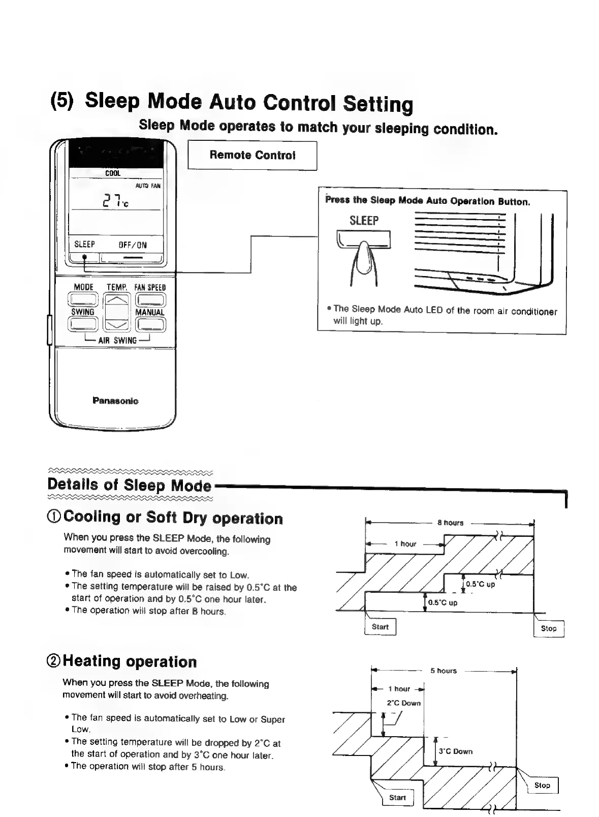 Panasonic CS-2473KR - 16. Sleep Mode Auto Control; Sleep Mode Operation Details and Settings