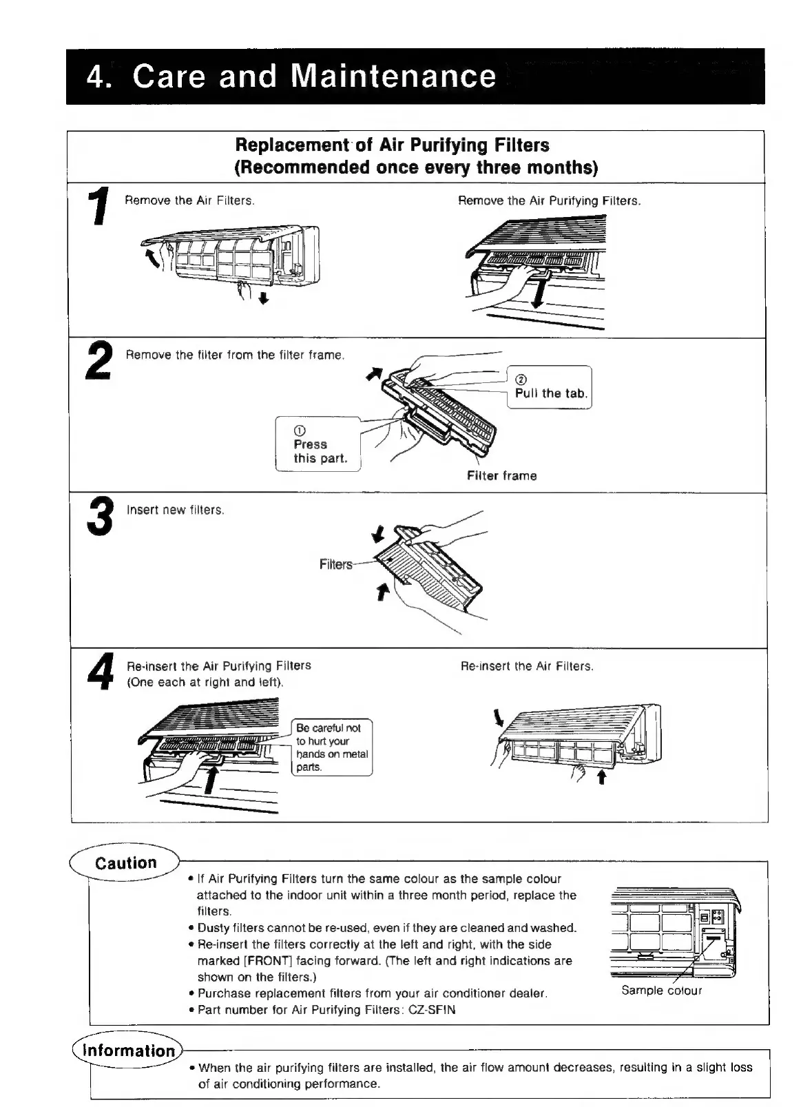 Panasonic CS-2473KR - 18. Care and Maintenance; Air Purifying Filter Maintenance