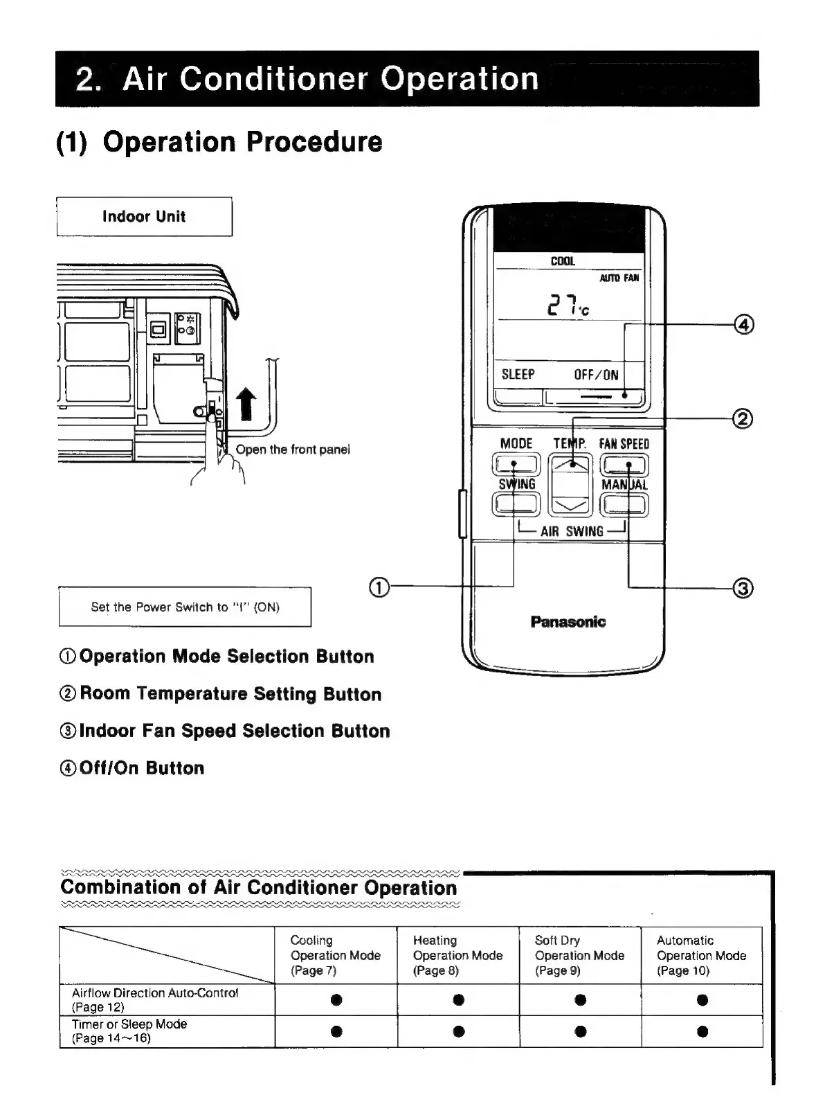 Panasonic CS-2473KR - 6. Air Conditioner Operation; Basic Operation Procedure and Mode Combinations