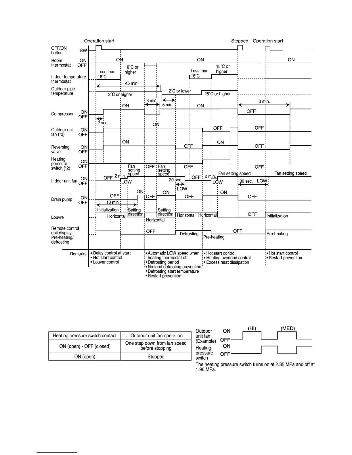 (At the start of heating mode operation, the fan operates at HI speed.)