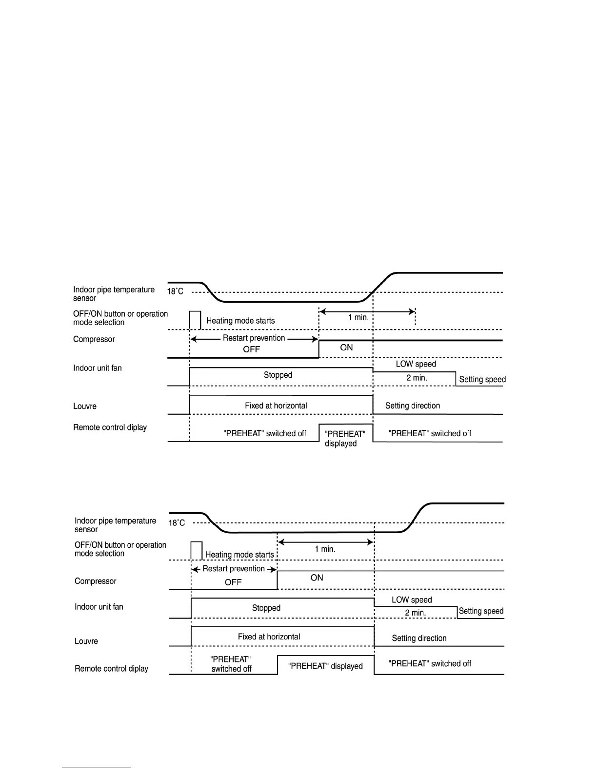 After cancellation, the “PREHEAT” display on the remote control disappears and the louvre operation returns to the previous