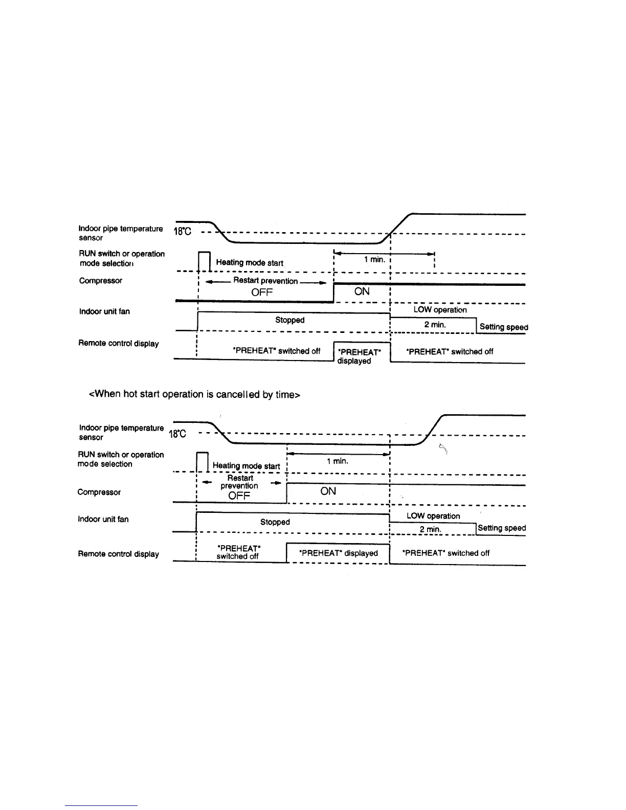 Hot starting is cancelled when the temperature detected by the indoor unit pipe temperature sensor is 18°C