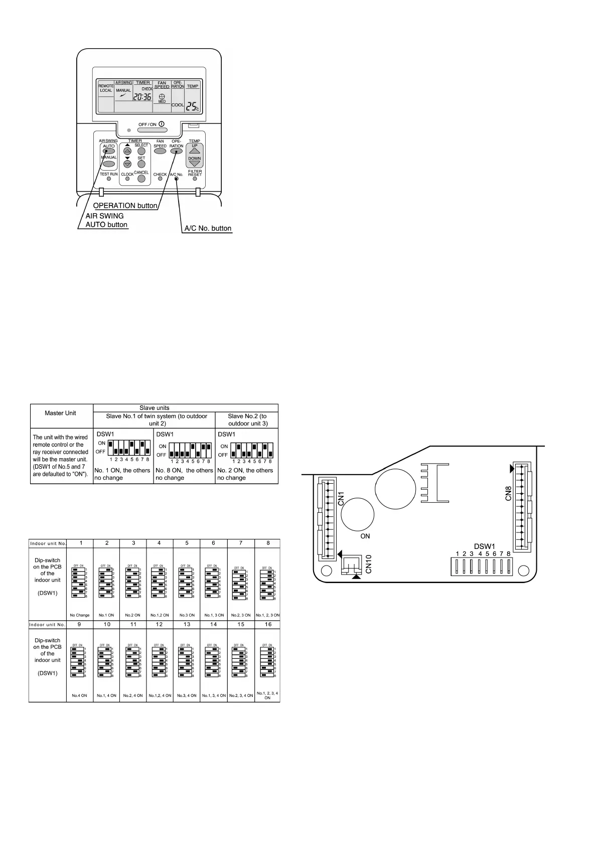 2. Set the No. 8 pin of dip switch (DSW1) at the indoor unit’s