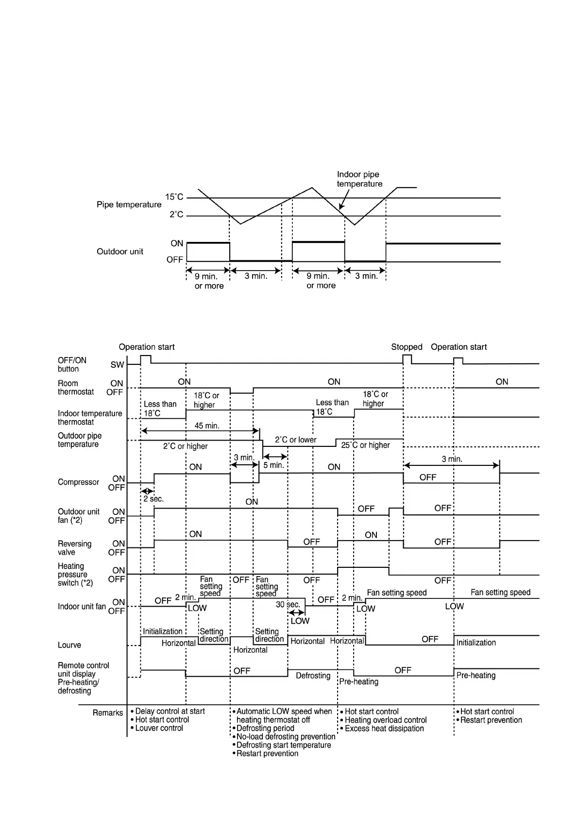 (The above illustration only shows the operation stops due to freezing prevention control of the indoor pipe temperature sensor.)