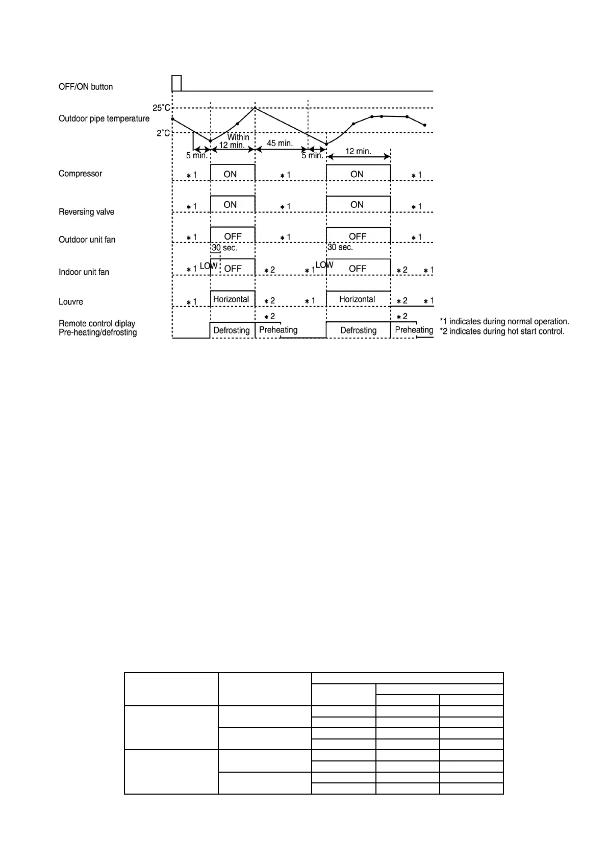 Defrosting mode operation will stop if the outdoor unit heat exchanger outlet sensor is 25°C or higher or after 12 minutes