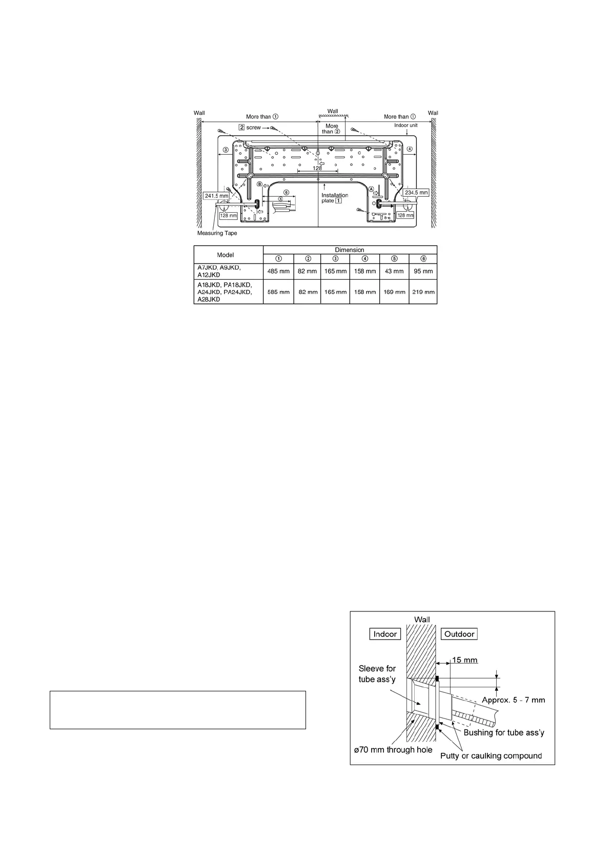 • Drill the piping hole at either the right or the left and the hole should be slightly slanting to the outdoor side.