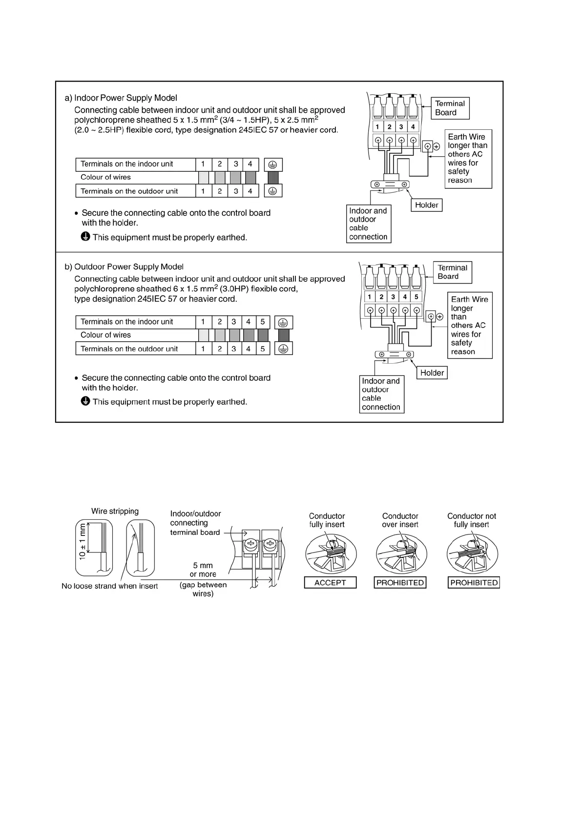 • Earth wire shall be Yellow/Green (Y/G) in colour and longer than other AC wires for safety reason.