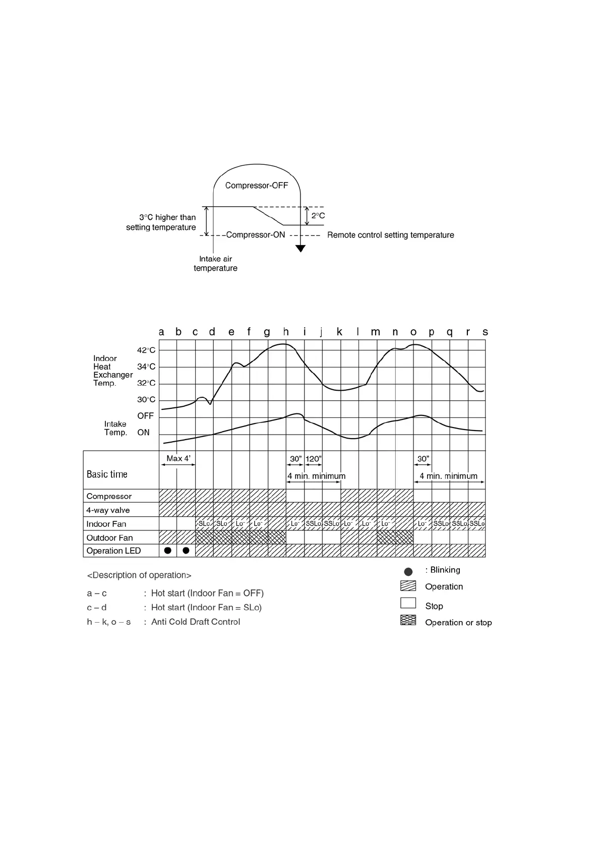 • During heating operation, the compressor will stop running and restart as shown in below figure.