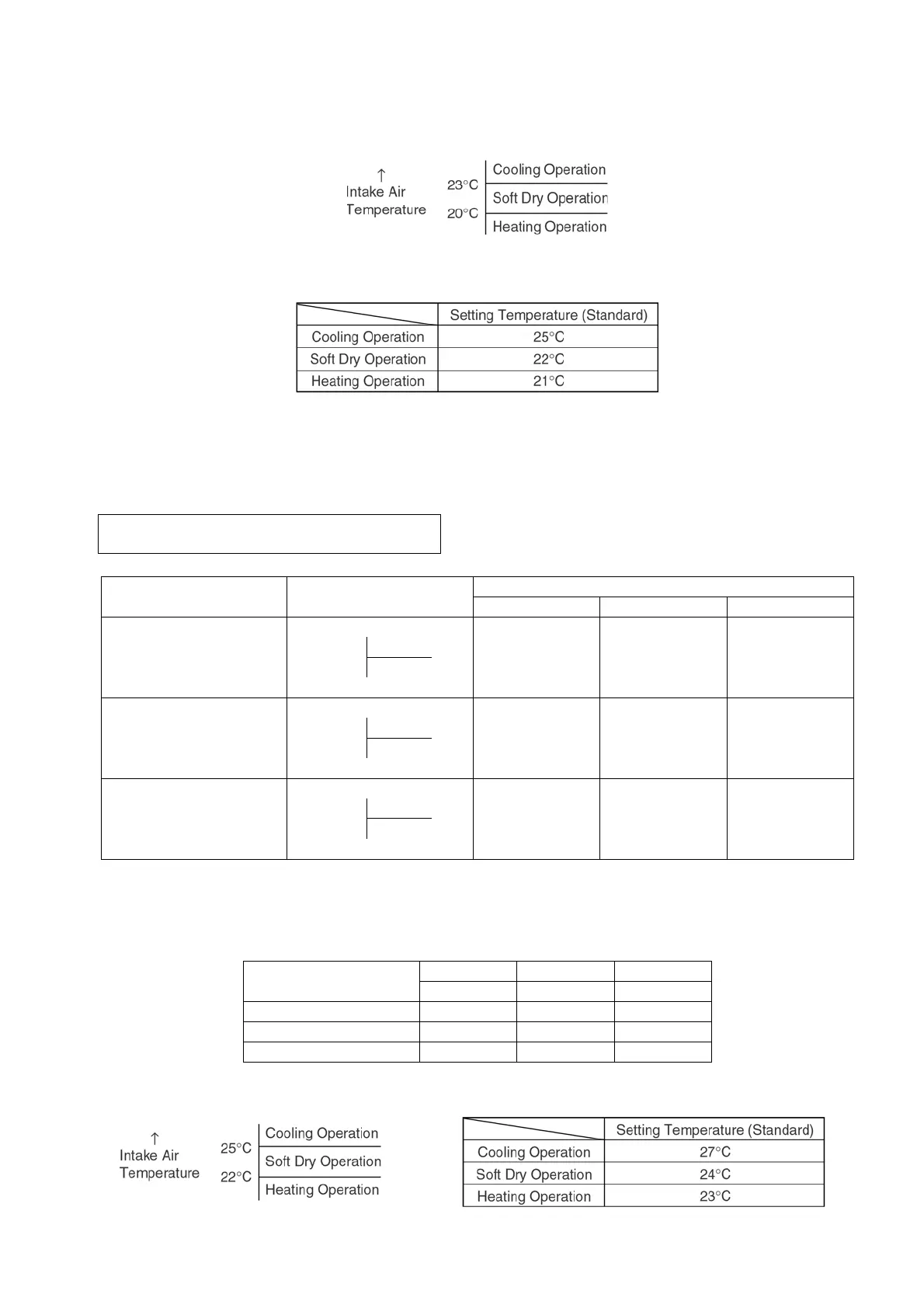 • After judged the temperature, the operation mode is determined by referring to the below standard.