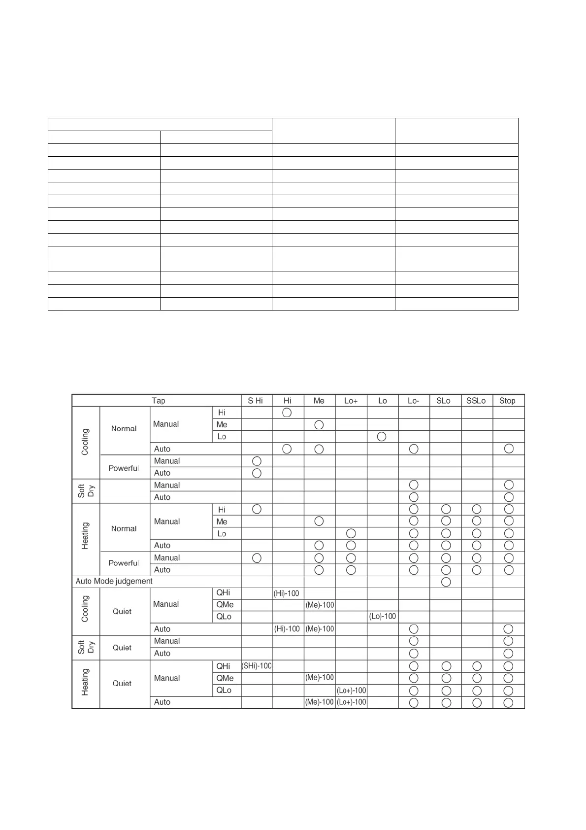 • When set to Auto Fan Speed, the fan speed is adjusted between maximum and minimum setting as shown in the table.