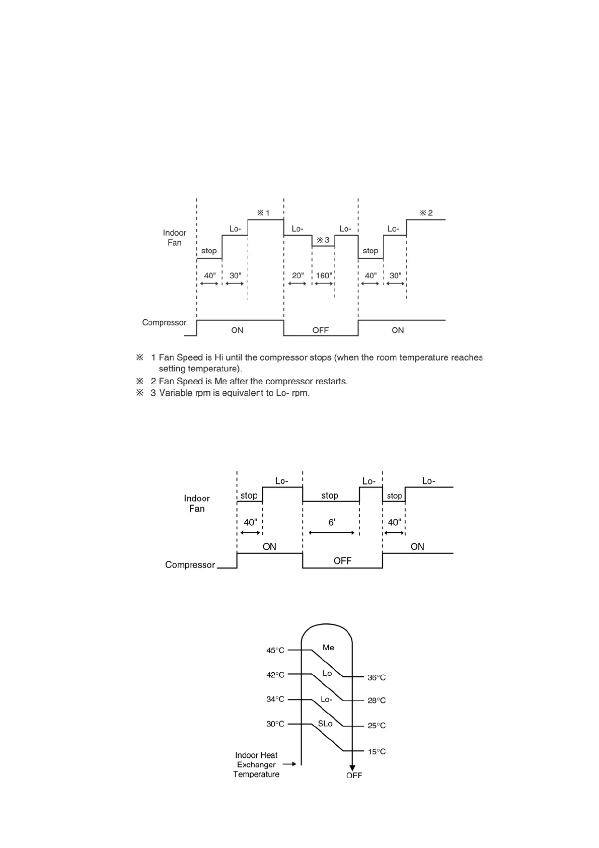 4. During compressor stop, indoor fan will operate at Lo- for the beginning 20 seconds to prevent higher volume of refrigerant