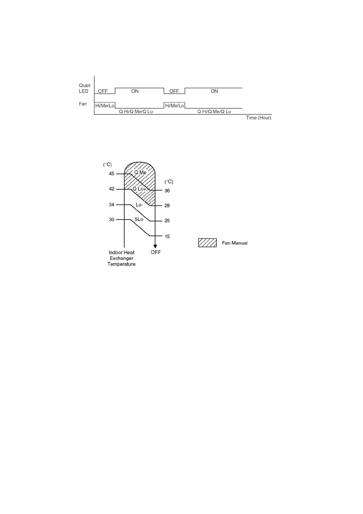 • For Automatic operation, the indoor fan will operate at SLo speed for 25 seconds, 30 minutes before the set time to detect the
