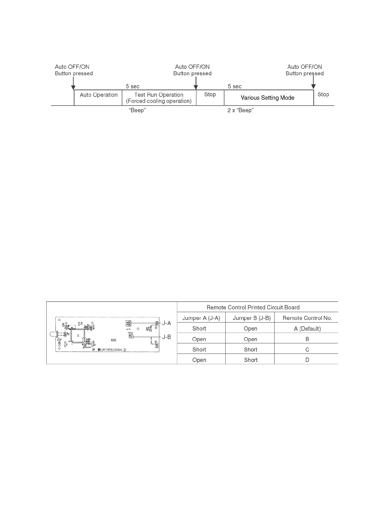 The Test Run operation will be activated if the Auto OFF/ON button is pressed continuously for more than 5 seconds. A “beep”