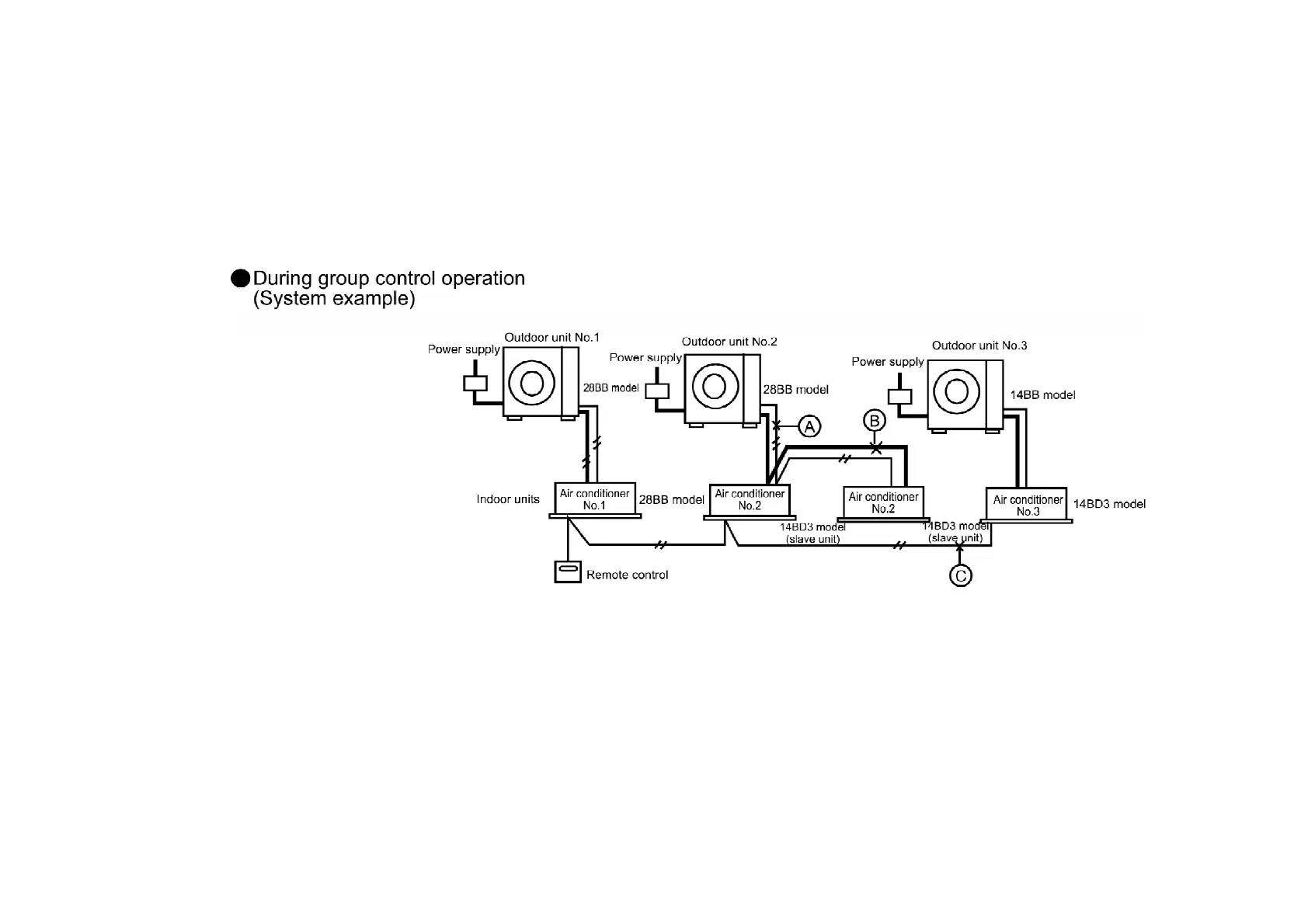 outdoor unit are not connected (open circuit at section A) / Symptom: / Operation of indoor unit
