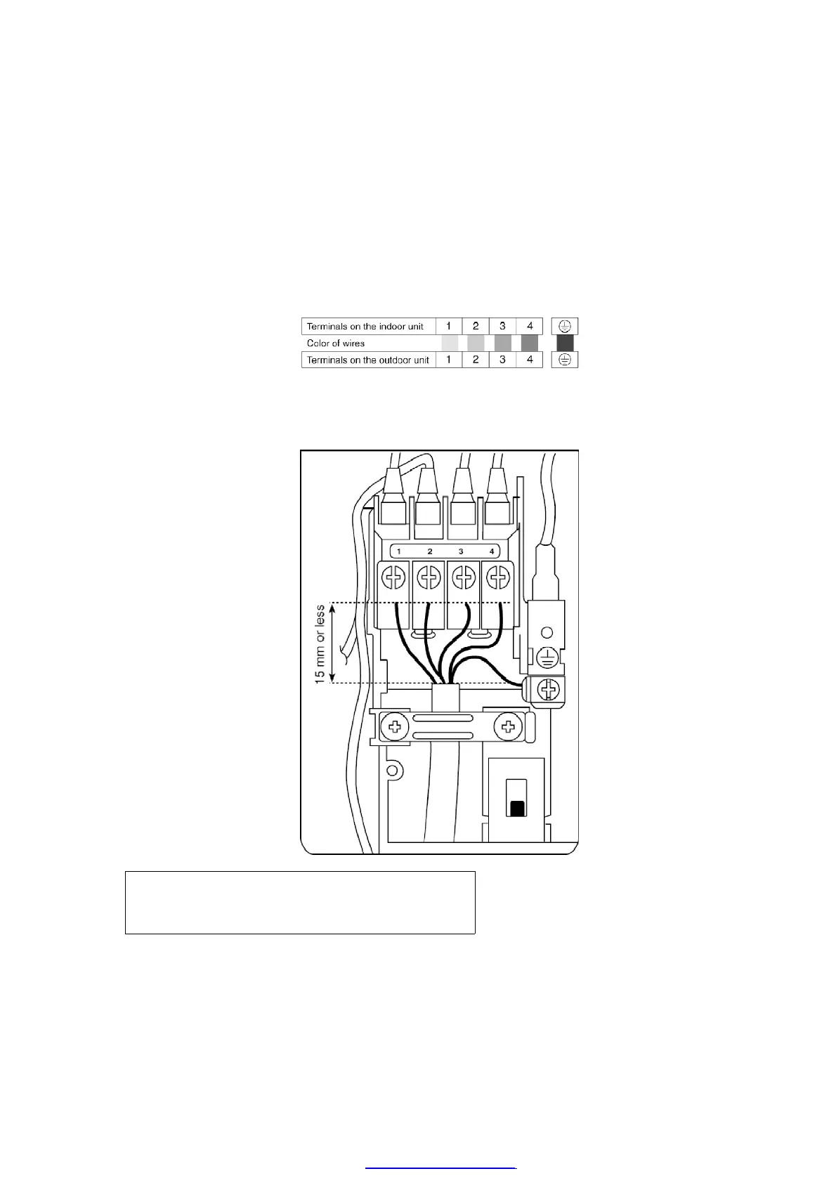 Ensure the color of wires of outdoor unit and the terminal Nos. are