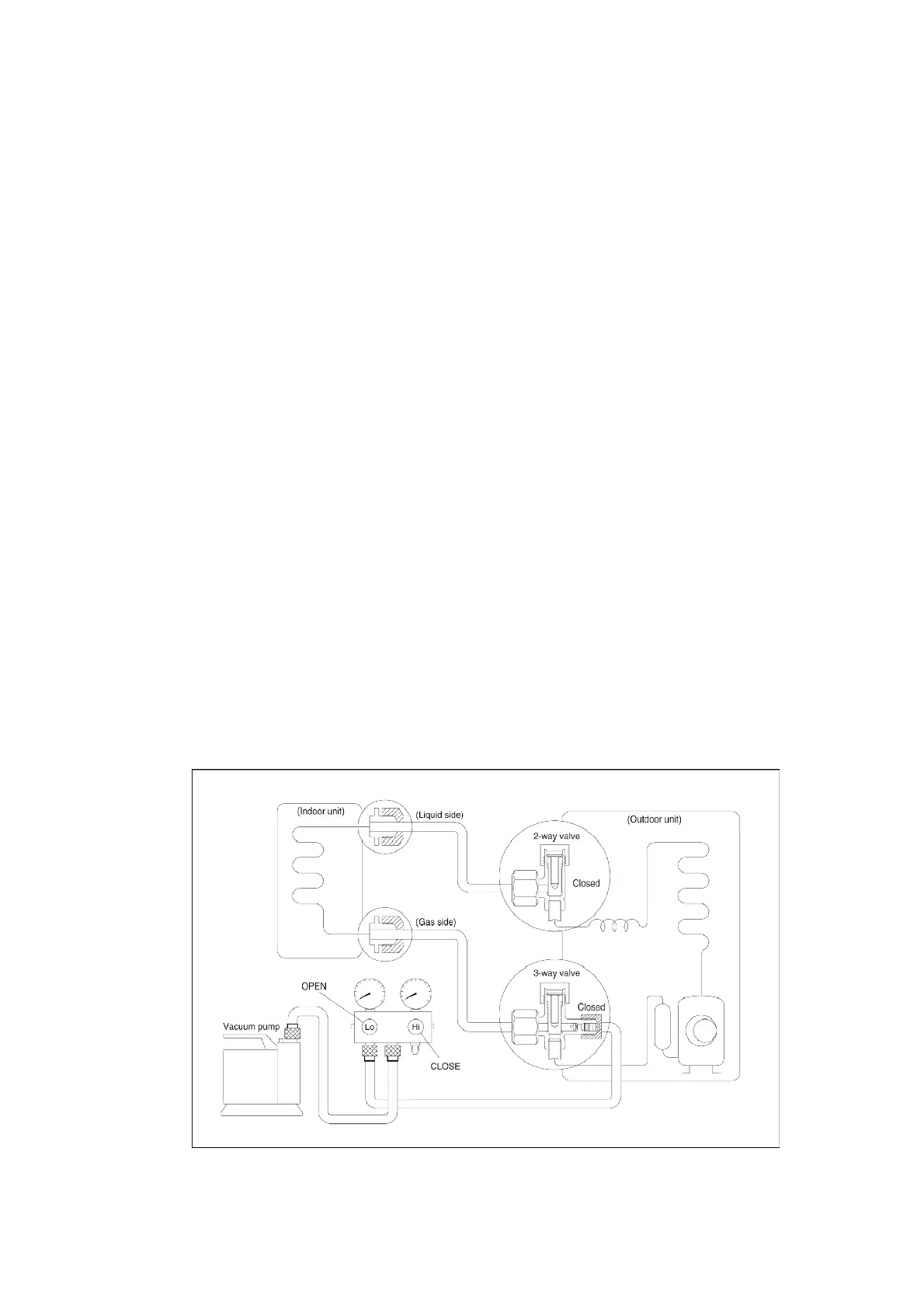 If air remain in the indoor unit and refrigeration pipes, it will affect the compressor, reduce to
