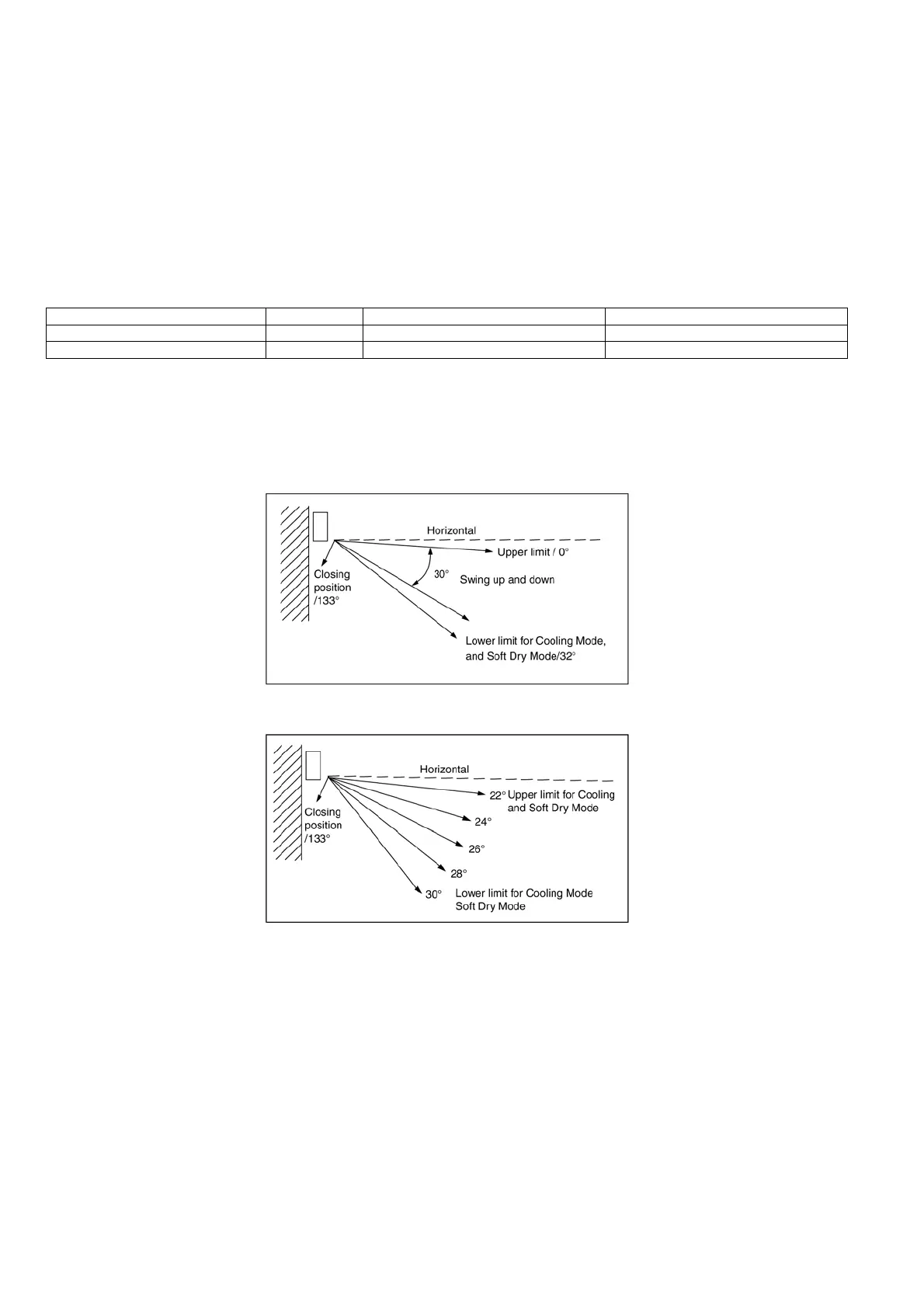 During Anti-Dew condensation prevention, the horizontal louver angle in Manual control are as below figure.